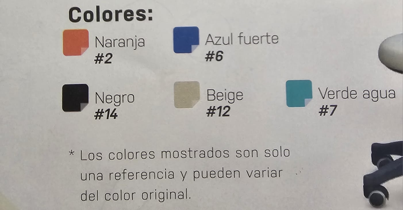 Azul fuerte, Beige, Naranja, Negro, Verde Agua